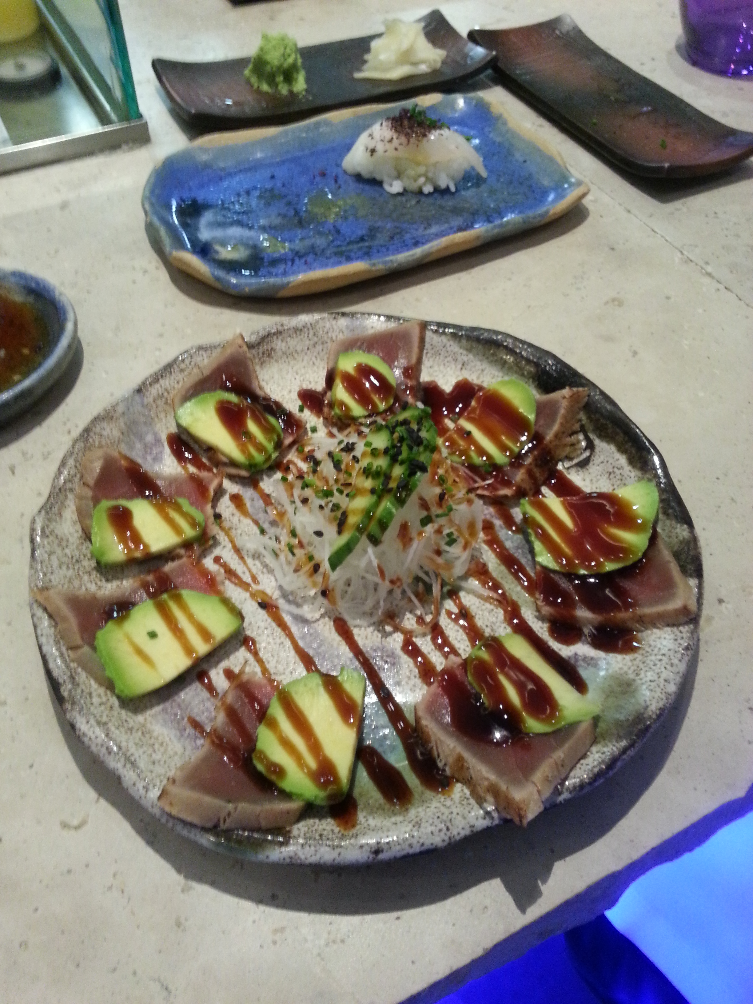 El siguiente entrante fue el tataki de atún con aguacate y salsa kaba-Yaki. Muy buena presentación y sabroso sabroso.