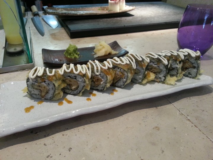 Tras los primeros entrantes pasamos a un plato más contudente: el Maki Hot de bacalao negro. Los maki hot son makis pero con un poco de tempura, así que están templados. Y el bacalao negro es una de las especialidades de Shikku. Las veces anteriores que he estado allí siempre lo he pedido y la verdad es que si es tu primera visita recomiendo pedir el plato de bacalao negro sin más. Esta vez pedimos el maki hot y la verdad que la pinta es estupenda y el sabor del bacalao negro se hace notar, de forma más atenuada esta claro, pero muy bien acompañado.