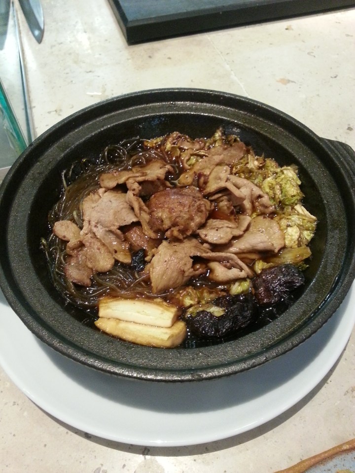 Y ya pasamos al sukiyaki. Como ya os decía, este sitio es bastante elegante y no esperéis un sukiyaki tradicional de estos que te ponen la plancha caliente, tu olla, sake y soja y te lo vas haciendo tú, como por ejemplo en Miyama. En este caso ya te lo traen preparado y sólo te tienes que preocupar en disfrutarlo. Muy muy bueno. Sabor contundente buenísimo entre el cordero y las setas, que mayoritariamente eran shiitake. Y como no con su tofu y sus noodels. Riquísimo!!