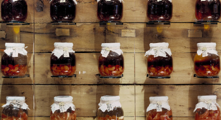Por último los postres. He probado casi todos y no hay ninguno que no merezca la pena. El último fue un helado de sésamo verde con mini-macaroons de cereza muy sorprendente. En la carta de postres encontraréis con qué bebida acompañar cada uno de ellos. Yo opté por un shochu de cereza, un licor japonés hecho con patata, tipo schnapps. Como curiosidad hay una de las paredes del restaurante que está decorada con tarros de shochu.