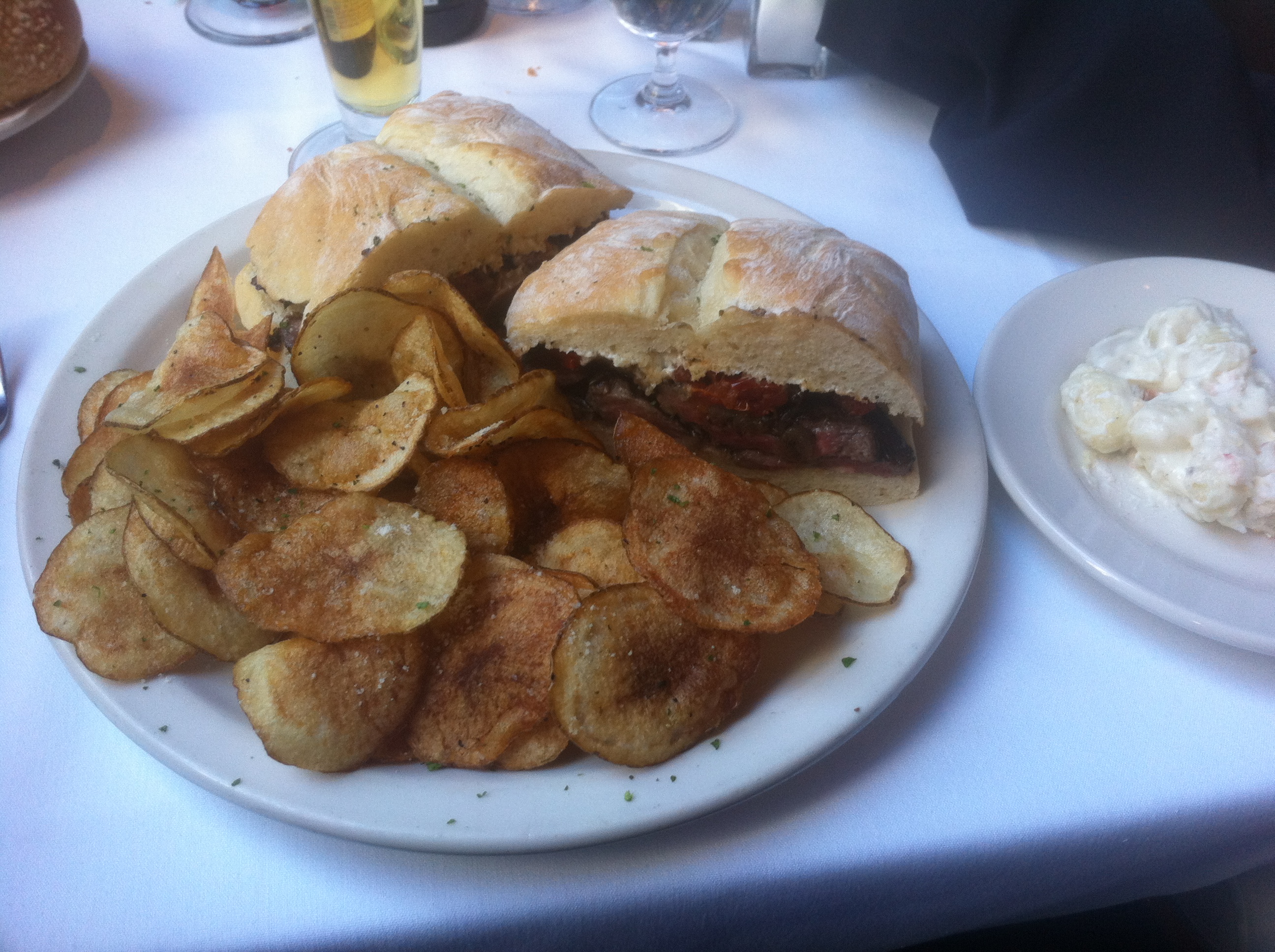 Para comer tomé un steak sandwich acojonante. Enorme, jugoso, sabroso, tierno y con el punto perfecto. Va en pan ciabatta y con cebolla y tomates asados. Mis compañeros pidieron la Prime Burger, hamburguesa enrome con carne de primera calidad. Impresionante también.