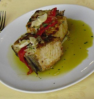 Bacalao Minhota (con sofrito de cebolla, tomate y pimiento).