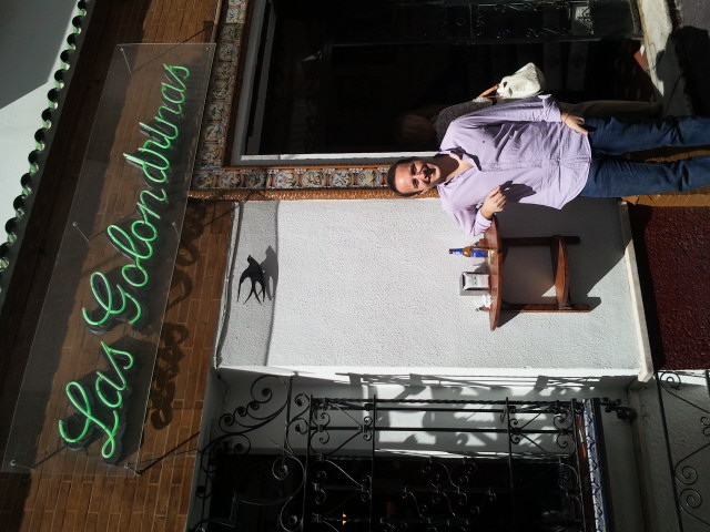 El sitio nos lo recomendaron en el Hotel Alminar. La verdad que es la segunda vez que hemos ido a este hotel y cada vez me gusta más. Está perfectamente localizado a escasos metros de la catedral en una calle estrecha y peatonal. Por lo que el descanso está asegurado. Si vais, yo recomiendo que digáis que preferís las habitaciones del edificio anexo al hotel. Son más baratas y están perfectas. Si ya están cogidas, las habitaciones de la última planta también están bien. Amplias y con vistas a la Giralda nada más abrir la puerta. Aunque son más caras.