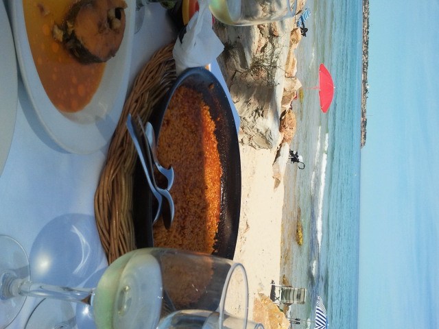 La carta es extensa y tienes especiales murcianas como la ensaladilla murciana o el caldero murciano. El caldero murciano es el arroz hecho sólo con un fondo de pescado del Mar Menor (mújol, dorada, etc.) y las ñoras y ajo para darle sabor. Primero se sirve el arroz pelado y después el pescado utilizado en el caldo. Tengo que decir que el arroz está bueno pero no es que sean muy generosos con el pescado que te sirven y además, se repite cosa mala.