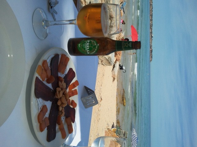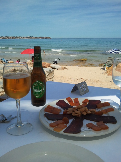 Si se está por la zona y hace buen tiempo recomiendo pasar a tomarse algo pero… creo que es mejor optar por las almendras con hueva de mújol o el calamar a la plancha que están realmente bueno.
