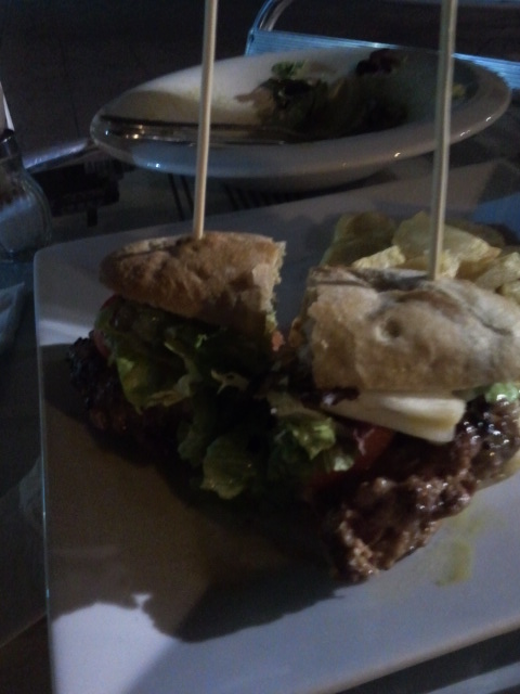 Y el plato principal: el McLuca de buey con cebolla confitada. En la primera visita es obligatorio pedirlo. y es que además antes de que nos tomasen nota por cada mesa que pasaban la gente iba pidiendo McLucas como el que pide la vez en el mercado. La hamburguesa está realmente sabrosa y buena. Es la antítesis del cartón que te comes en el burguer.