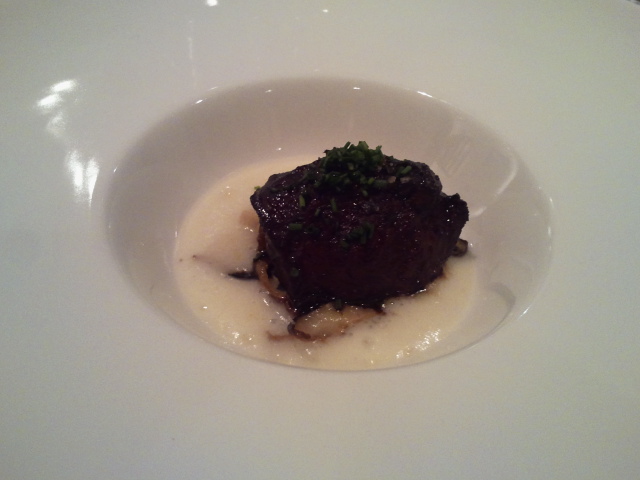 Y para terminar con los platos principales, carrillera glaseada con regaliz sobre puré de patata. El toque amargo del regaliz le da ese punto diferente que te deja flipado.
