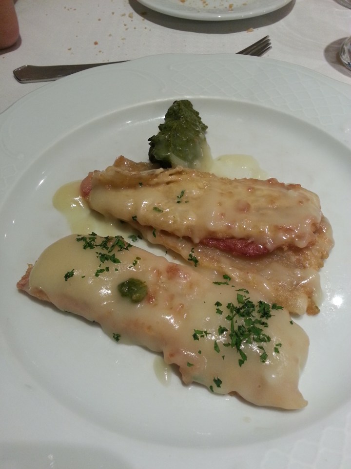 El siguiente plato fueron las pencas de acelga rellenas de jamón. Este es uno de los platos que más recomiendan en las reseñas de Google Madrid y la verdad es que está realmente bueno. Las pencas, muy sabrosas de por sí, las rellenan con jamón y por encima le ponen un poquito de salsa ligada que está que le da «jugosidad» a cada bocado. Además, acompañan las pencas con un puré de las hojas de acelga que también tiene un sabor estupendo. Un plato que hay que pedir al visitar este restaurante.