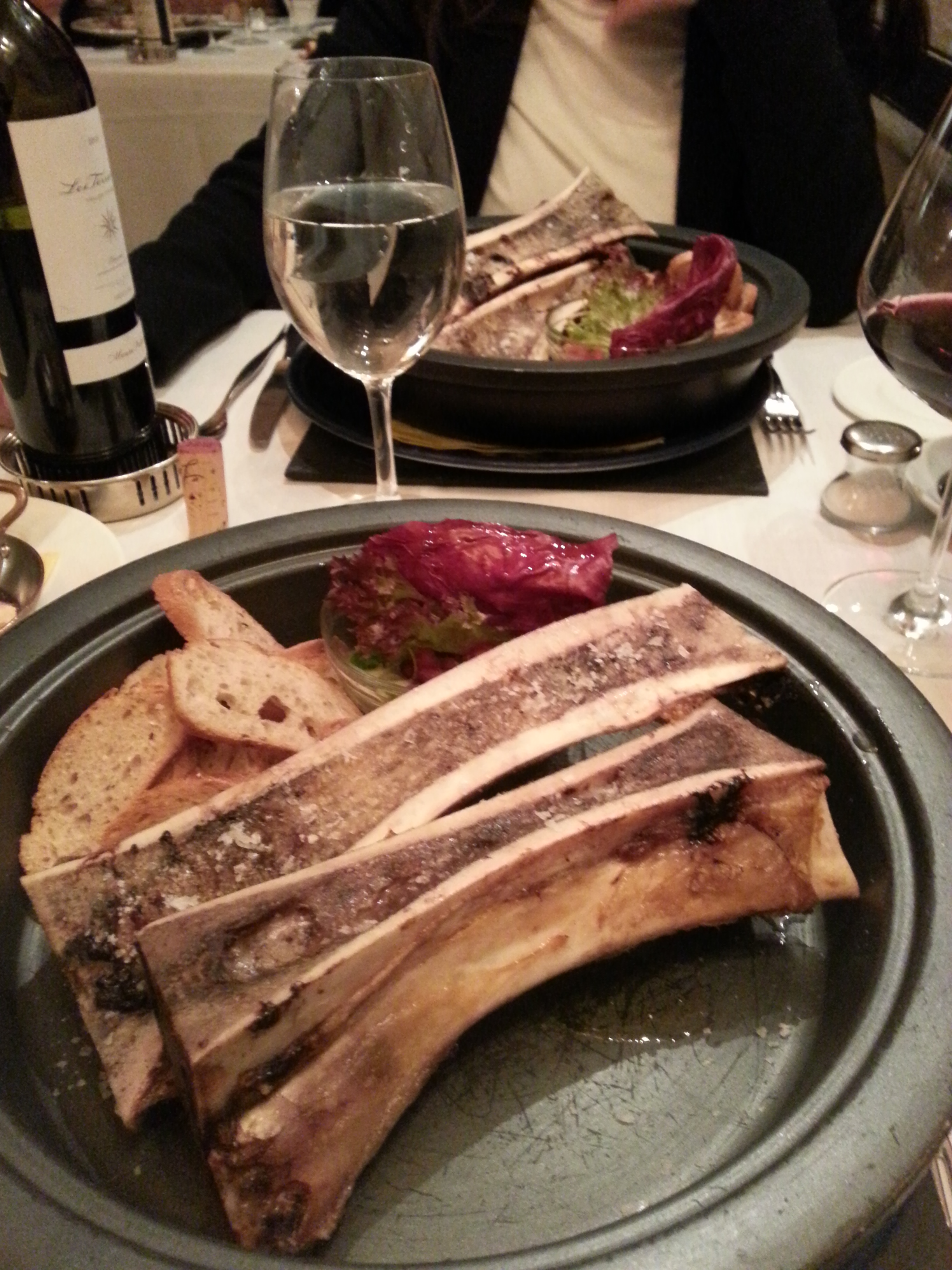 Y de segundo entrante, algo que es de obligado cumplimiento si visitas este restaurante. El tuétano de vaca. Puro sabor. Fino y exquisito. Otras veces nos lo han presentado cortando el fémur de forma transversal. Esta vez fue longitudinal y es todo un acierto. Presentación más espectacular y se rebaña, porque hay que rebañar si o si, con más facilidad. Y acompañado de una pequeña ensalada de berros y granada con una vinagreta suave que te resetea lo suficiente el paladar para volver a disfrutar del tuétano al siguiente bocado.
