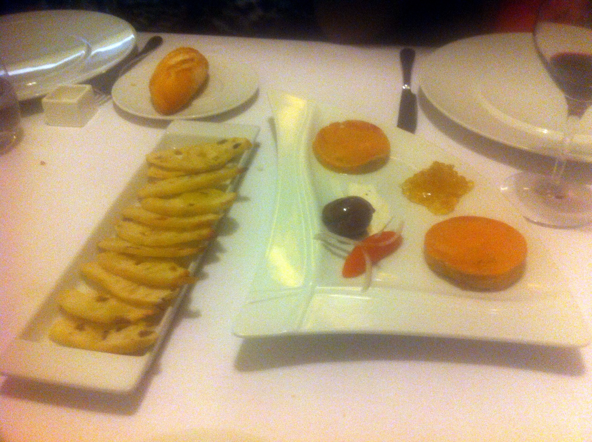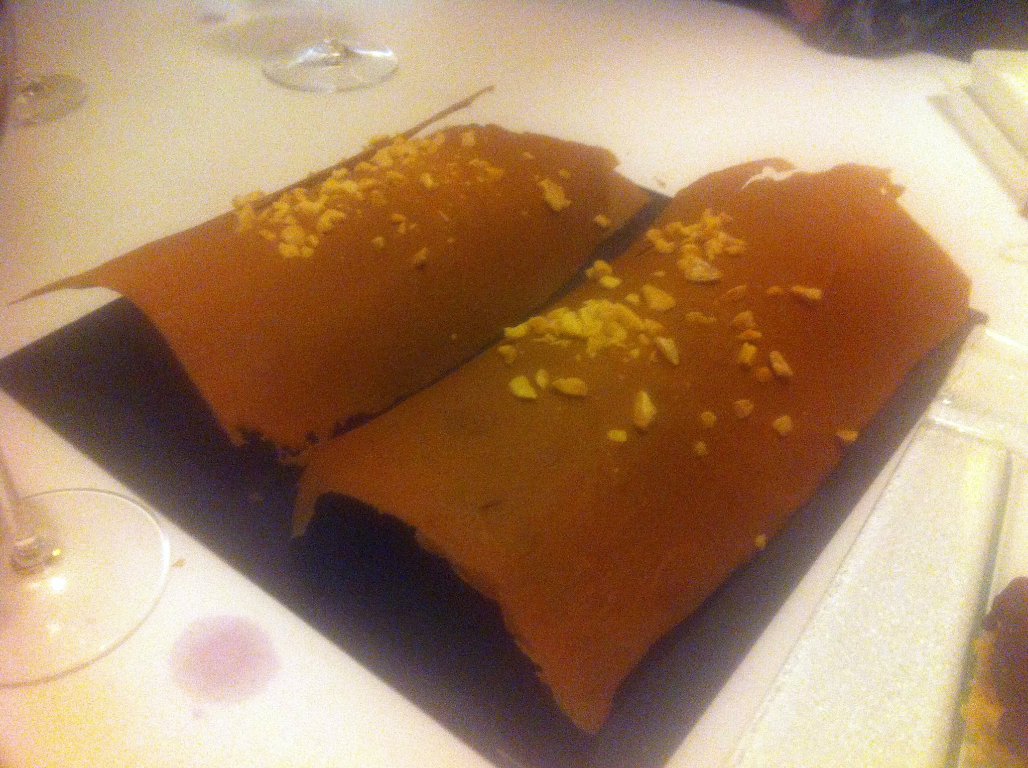 (Gallego me cuenta que probó los pimientos de Lodosa confitados con mucho cariño. A baja temperatura y durante 8 horas. Muy sabrosos y acompañados con un aceite muy bueno infusionado con tomillo. Los pidieron de entrante pero como acompañamiento de una buena carne roja no tienen competencia)
