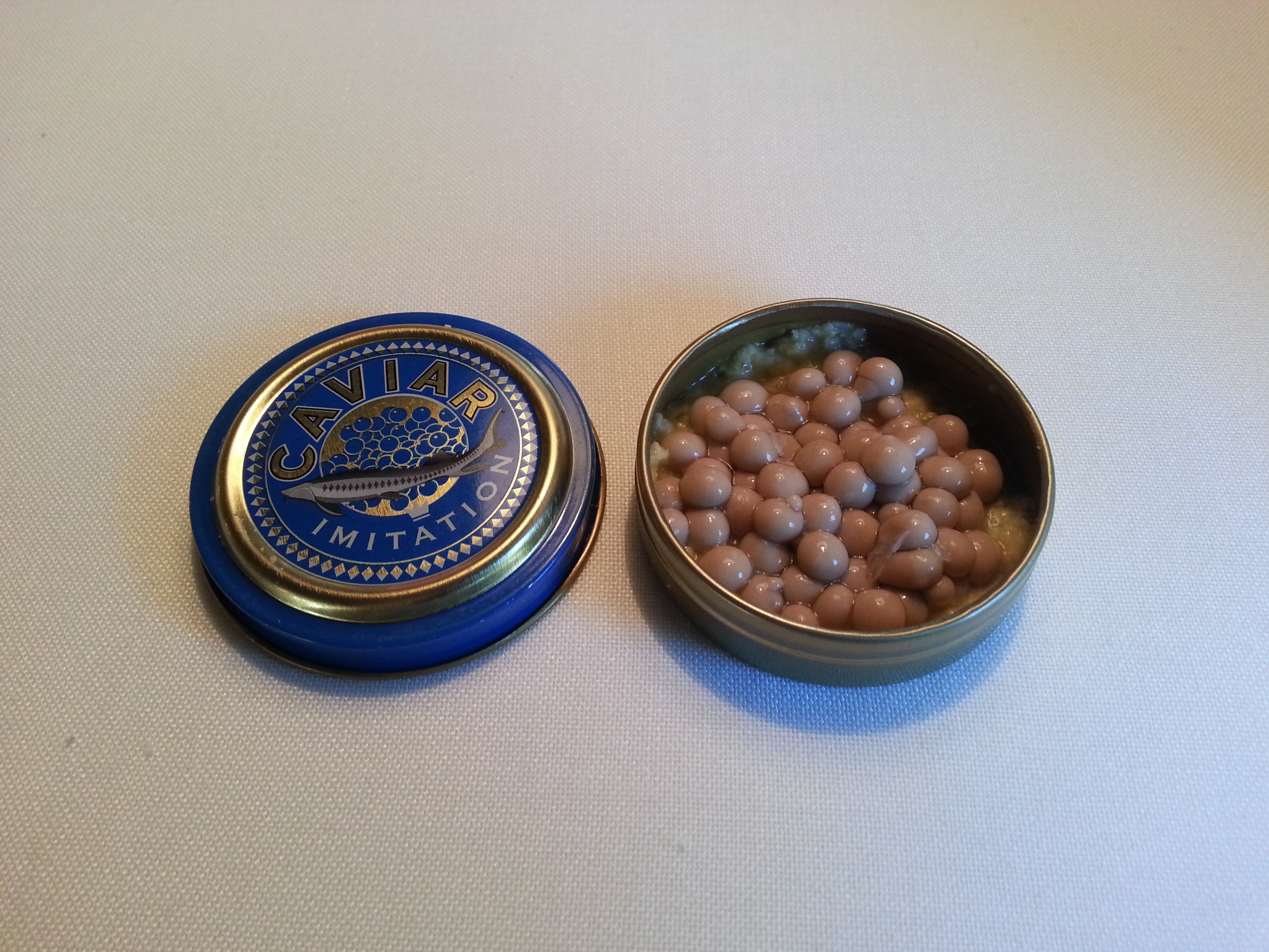 En la siguiente balda nos encontramos un nabo relleno con un guiso de bacalao y después la lata de base de ensaladilla con caviar de anchoas. Este último aperitivo es muy sabroso y de los que más nos gustó.