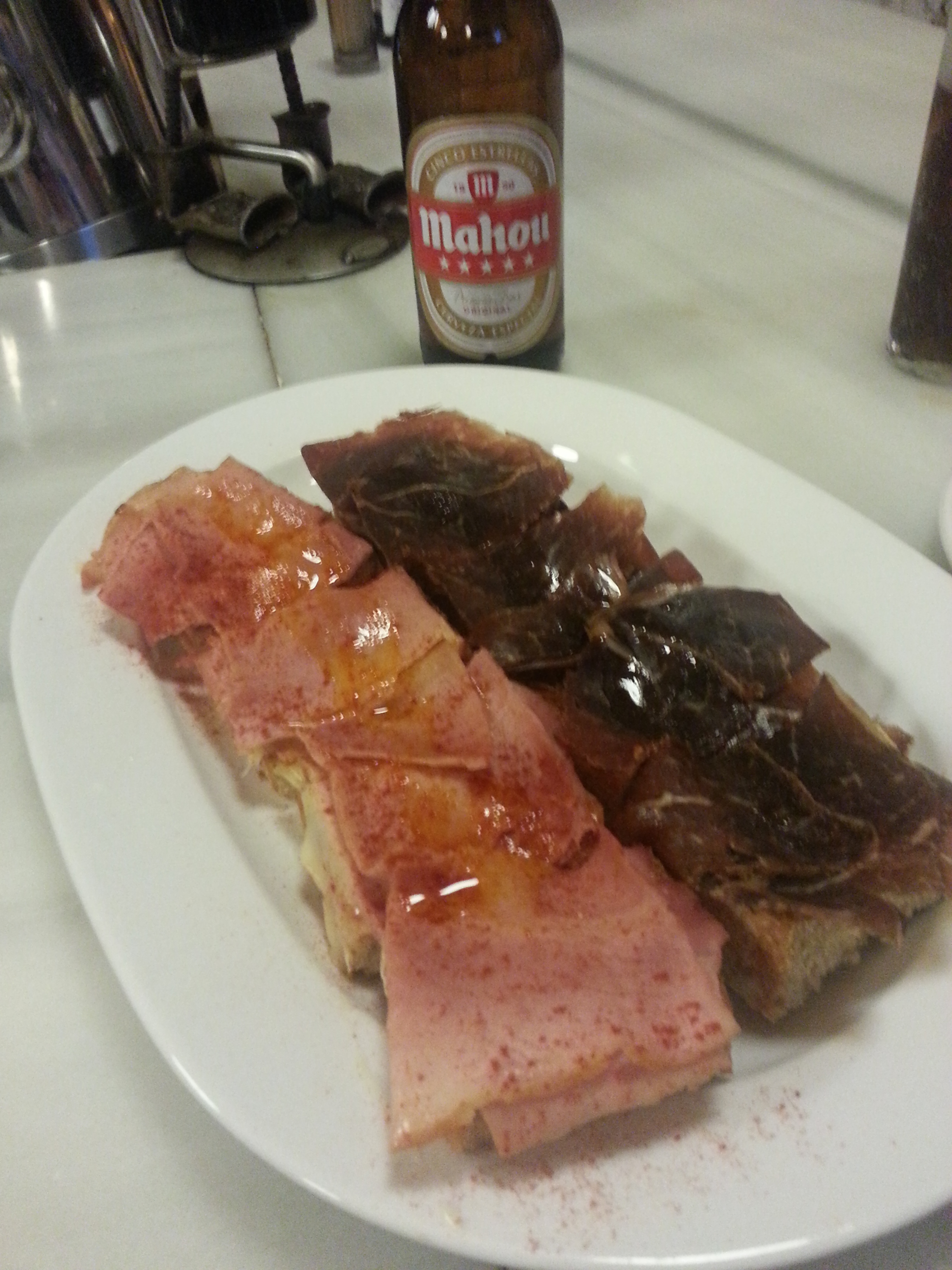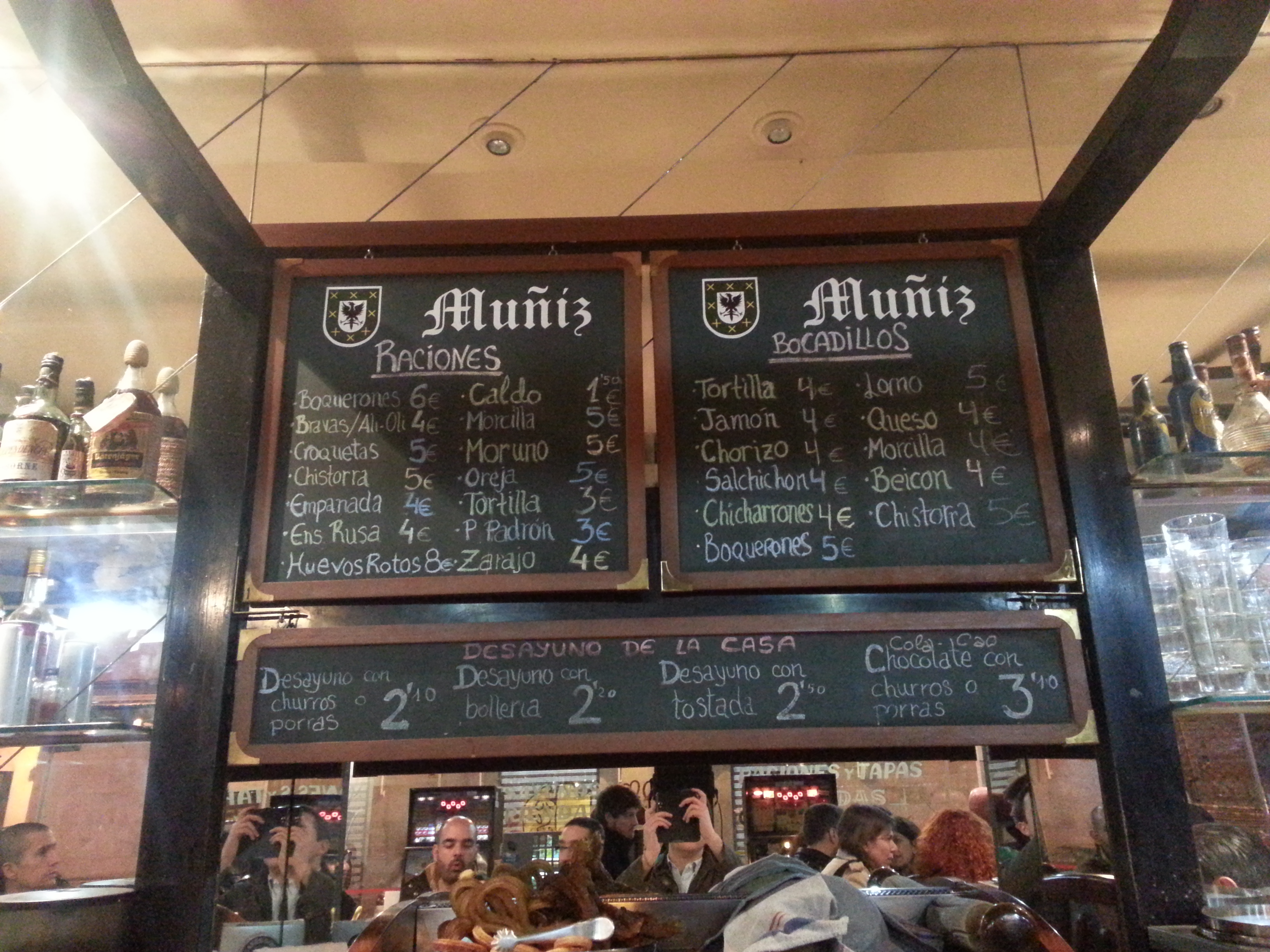 En el cruce de la calle Calatrava, la calle Toledo y la calle Humilladeros, se encuentra el Muñiz (Calatrava 3). Un establecimiento que lleva toda la vida y donde han trabajado tres generaciones de la familia Muñiz. La fachada es completamente de cristal y es de las pocas que quedan por Madrid. Es bodega así que la bebida tiene buen precio. Botellines bien fríos (1,3€) y botellas de vino para todos los gustos (desde 8€). Siempre con su tapa. Para picar algo os recomendamos la tortilla (3€) y la oreja con salsa al lado (5€). Durante el fin de semana, podéis degustar alguno de los pinchos sofisticados que haya preparado Matías ese día que van muy bien de precio.