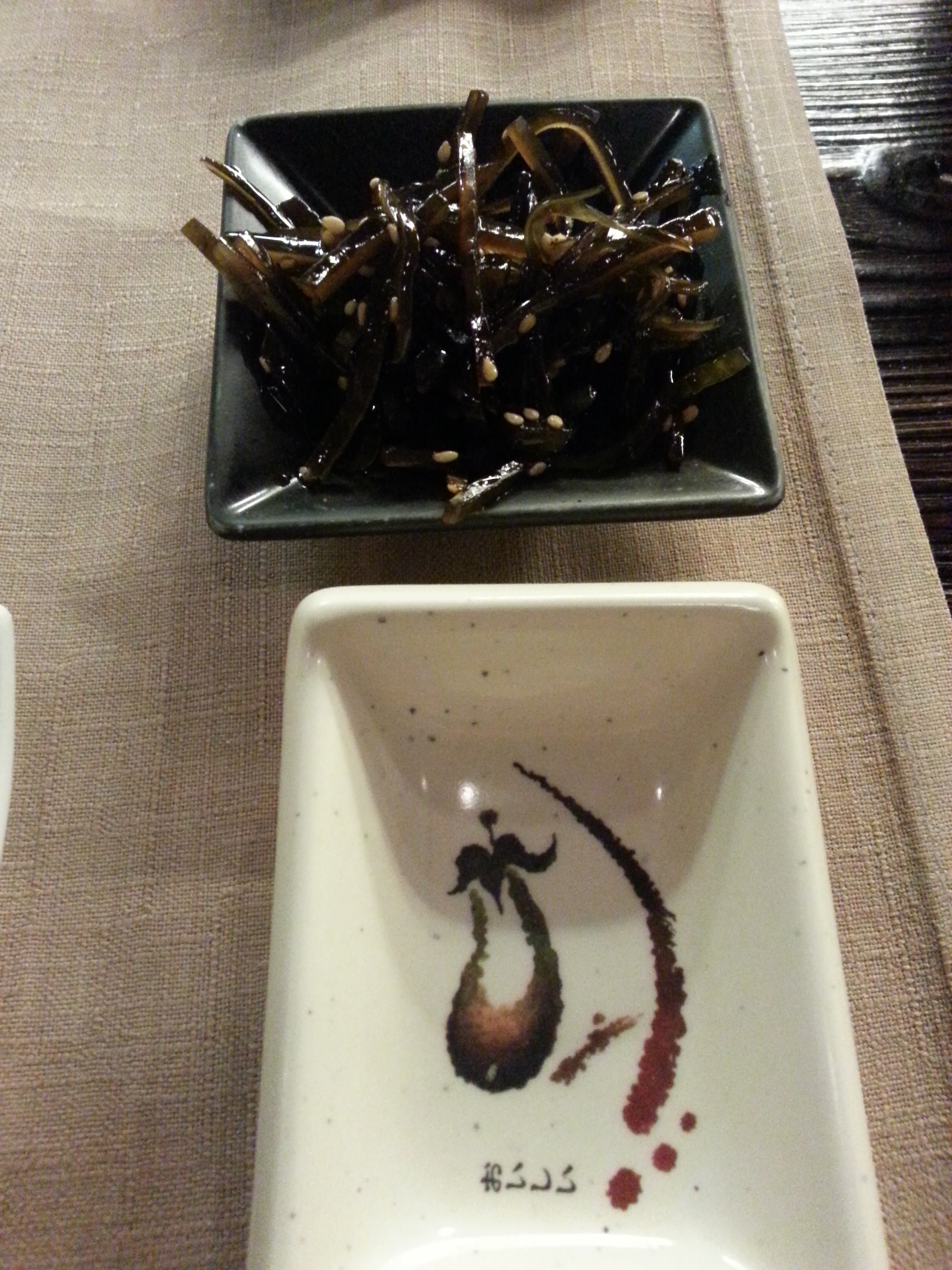 Empezamos con un aperitivo de algas que estaba realmente bueno. Estas algas no tienen nada que ver con el wakame que te sirven en otros sitios. Mucho más jugosas y tiernas. Ya desde un principio te empiezas a dar cuenta que este restaurante japonés está por encima de la media de los que conoces en Madrid.