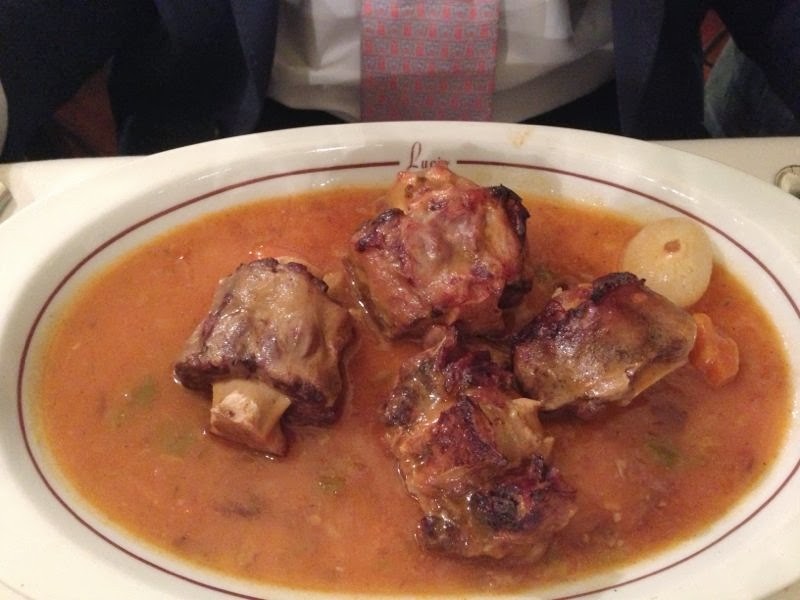 Mi hermano esta vez se aventuró y pidió rabo de toro, y la verdad es que no acertó. Creo que es la primera cosa que pruebo que Lucio no borda, y eso es raro. Aunque no estaba malo, el sabor, con pimentón, recordaba más a ragú que al típico rabo de toro.