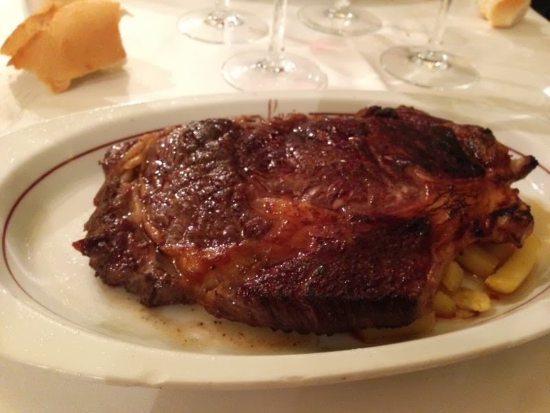 Mi padre y yo pedimos el filete especial, un filete de entrecot sobre una cama de patatas, que está para quitarse el sombrero. Con un grosor perfecto para que esté jugosa la carne, pero no poco hecha, y un sabor impresionante, es una gozada. Eso sí, al ser lomo alto es siempre un poco más dura la carne que por ejemplo un solomillo, pero eso depende de gustos. El solomillo por supuesto también lo bordan aquí.