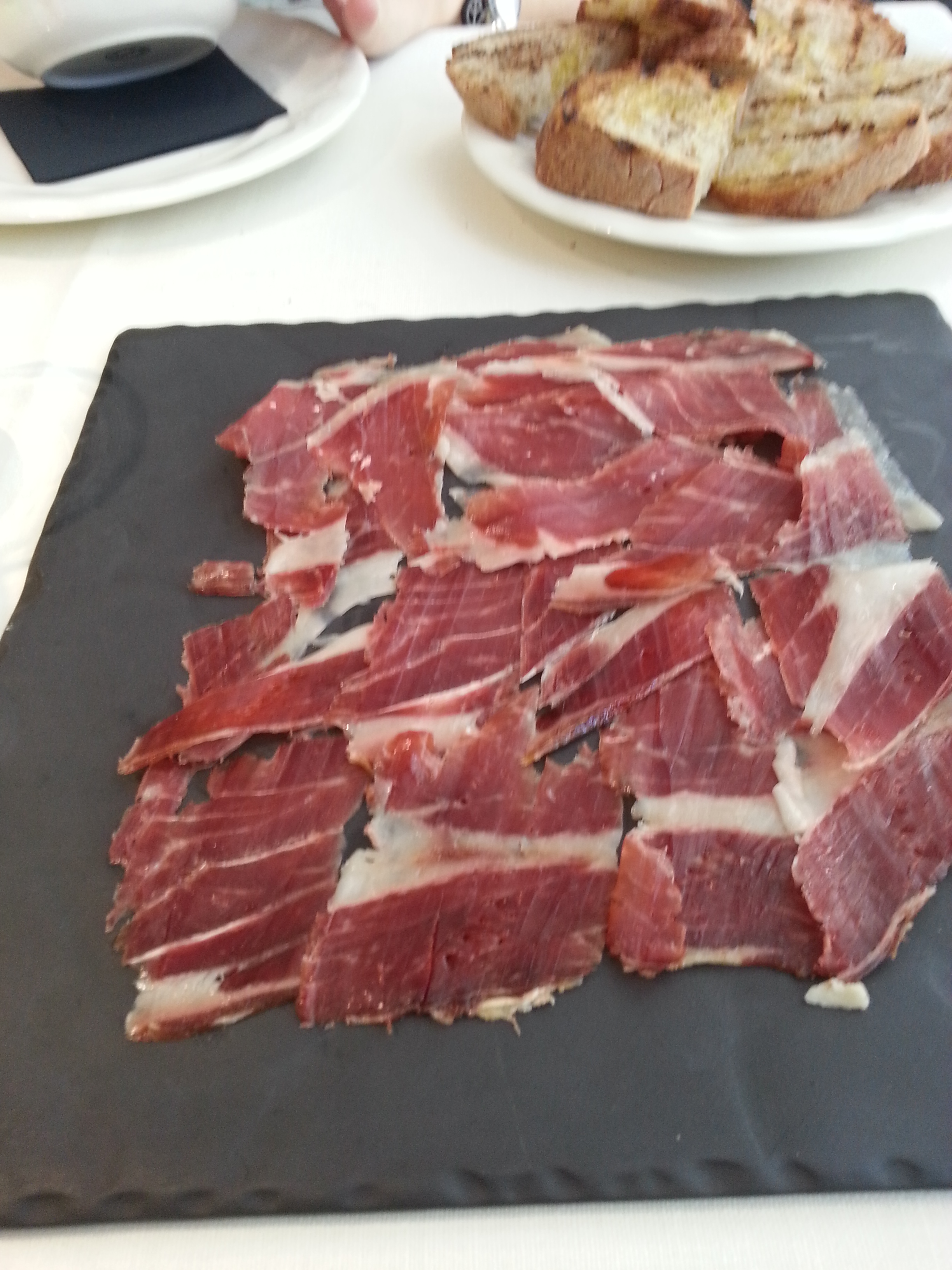 Después tomamos media ración de jamón ibérico de bellota. Jamón en su punto y plato bien vestido.
