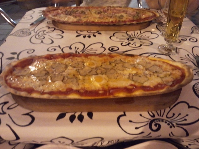 Actualización 26 de junio de 2012 by Gallego: fuimos el otro día y Carol se ha quedado enamorada de las pizzas y eso que tampoco es que sea la fan nº 1 de la pasta. Probamos la tartufo que es para volverse chalado (os dejo una foto) y la de prosciuto con funghi, más estándar pero también buena. La masa es fina y crujiente y las pizzas no son nada pesadas. Muy buena. Os dejo una foto y tened en cuenta que se puede pedir media pizza de un tipo y media de otro. Nosotros no lo sabíamos y la verdad que tienen una gran variedad y es la mejor manera de probarlas. De entrante pedimos el carpaccio de carne y también estaba bueno pero… las pizzas están sencillamente genial.
