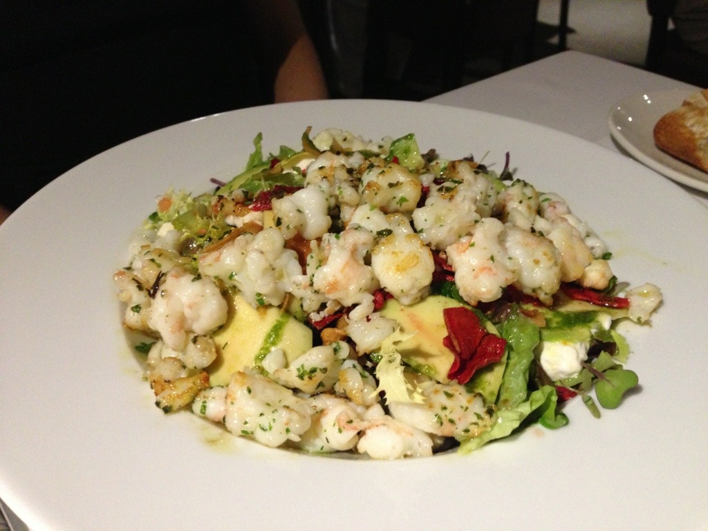 El último entrante fue la ensalada templada de burrata, tomate, aguacate y cigalas. Repetimos algunos ingredientes pero mereció la pena! Entre cinco la verdad es que tocamos a poco y nos dio mucha pena.