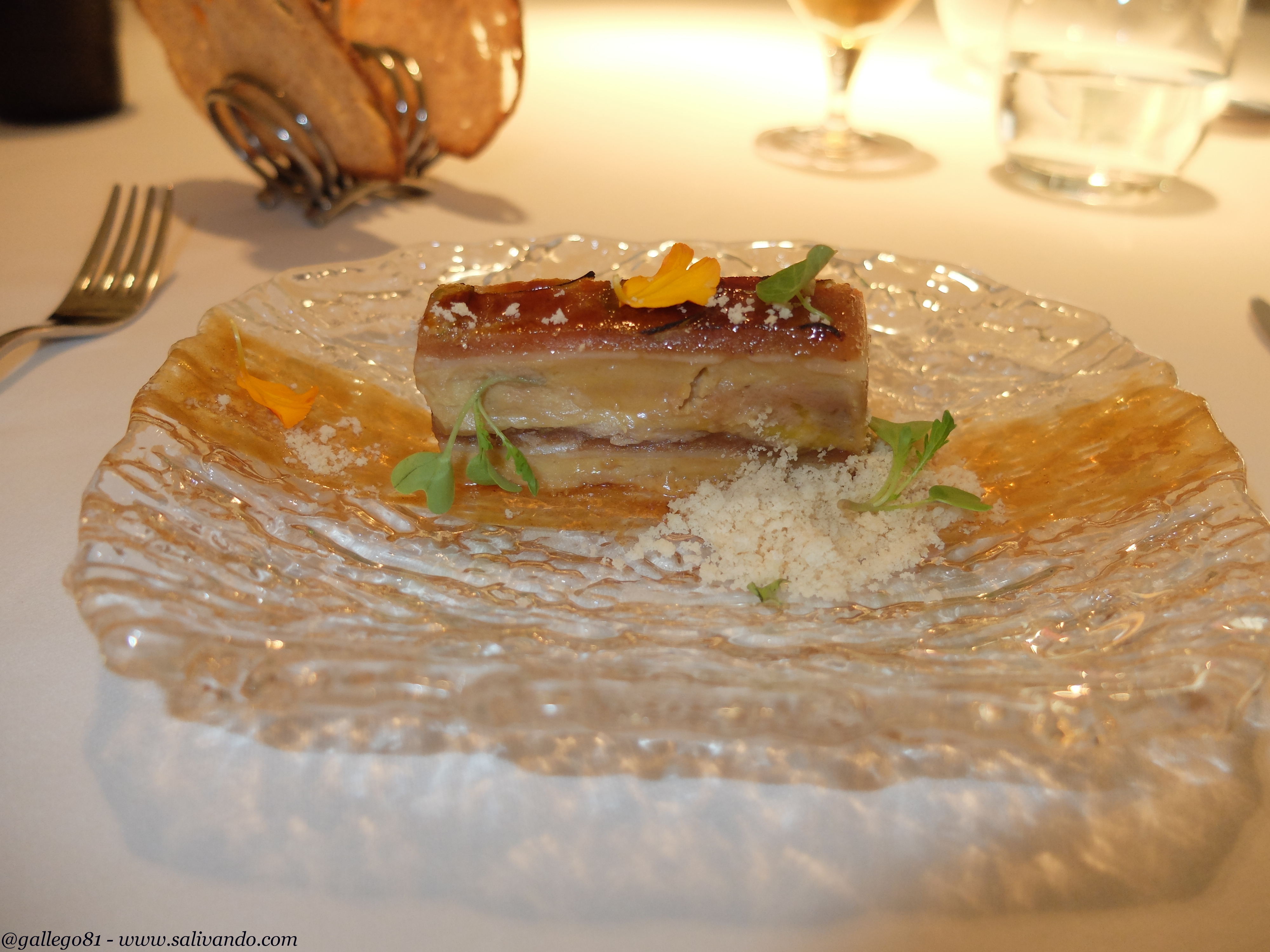 Y siguiendo con el menú degustación Clásicos de Chirón, pues tenemos una terrina de foie con manzana, perdiz y queso. El foie es un clásico de los menús degustación y siempre es curioso ver como lo presentan. En este caso, el queso y la perdiz suavizan un poco la potencia del foie pero tampoco es que consigan destacar mucho. Es muy buen plato, pero si tuviese que cambiar alguno del menú, sería este.