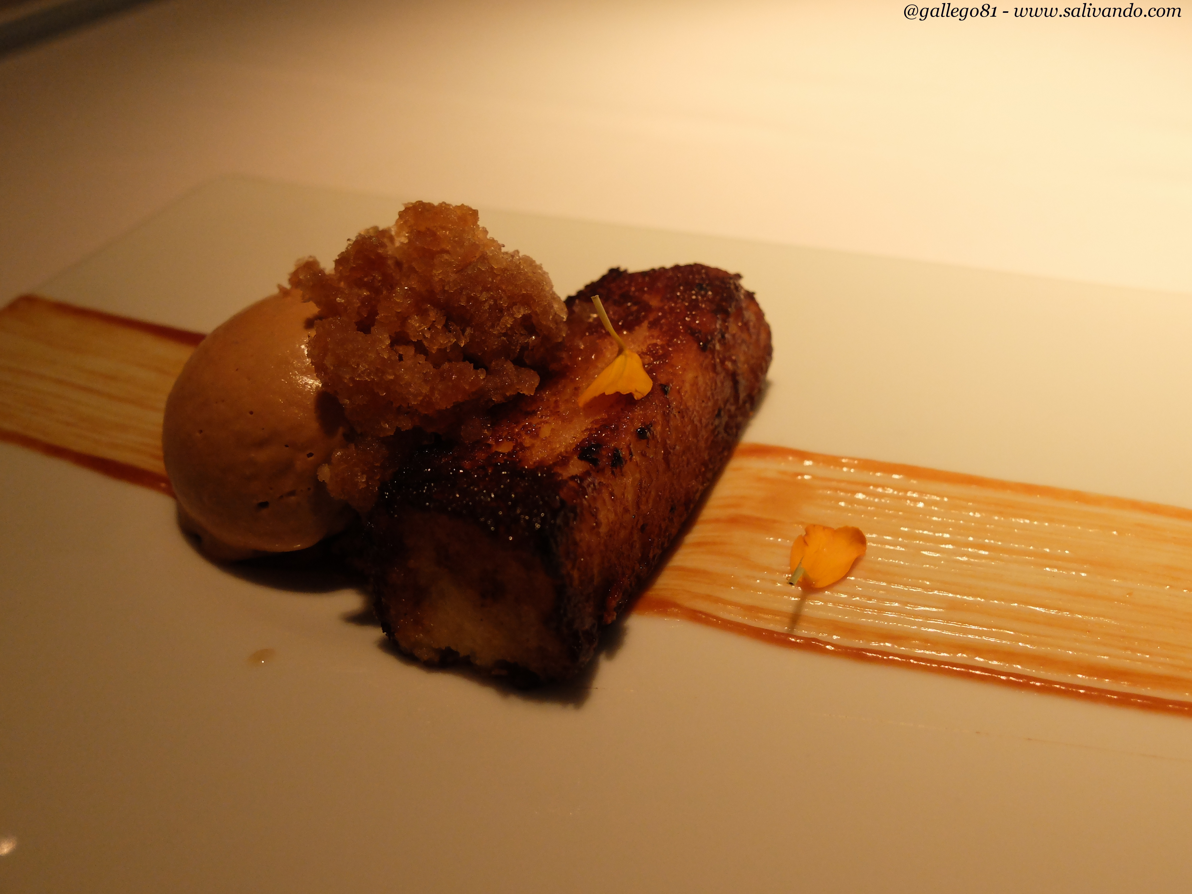 También merece mención especial el postre. Un brioche acompañanado de helado de café y toffe. El brioche esponjoso y muy bueno y el café y toffe con sus sabores muy marcados y sin empalagar en ningún momento.