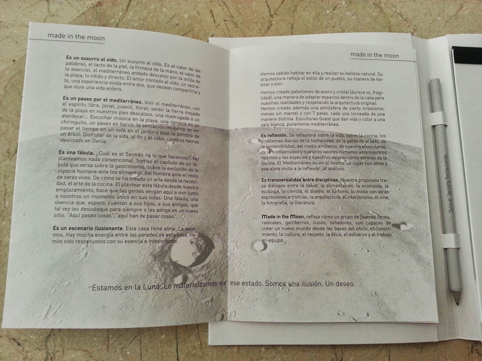 Una puntualización: El Menú del año 2013 se llama «Made in the Moon»