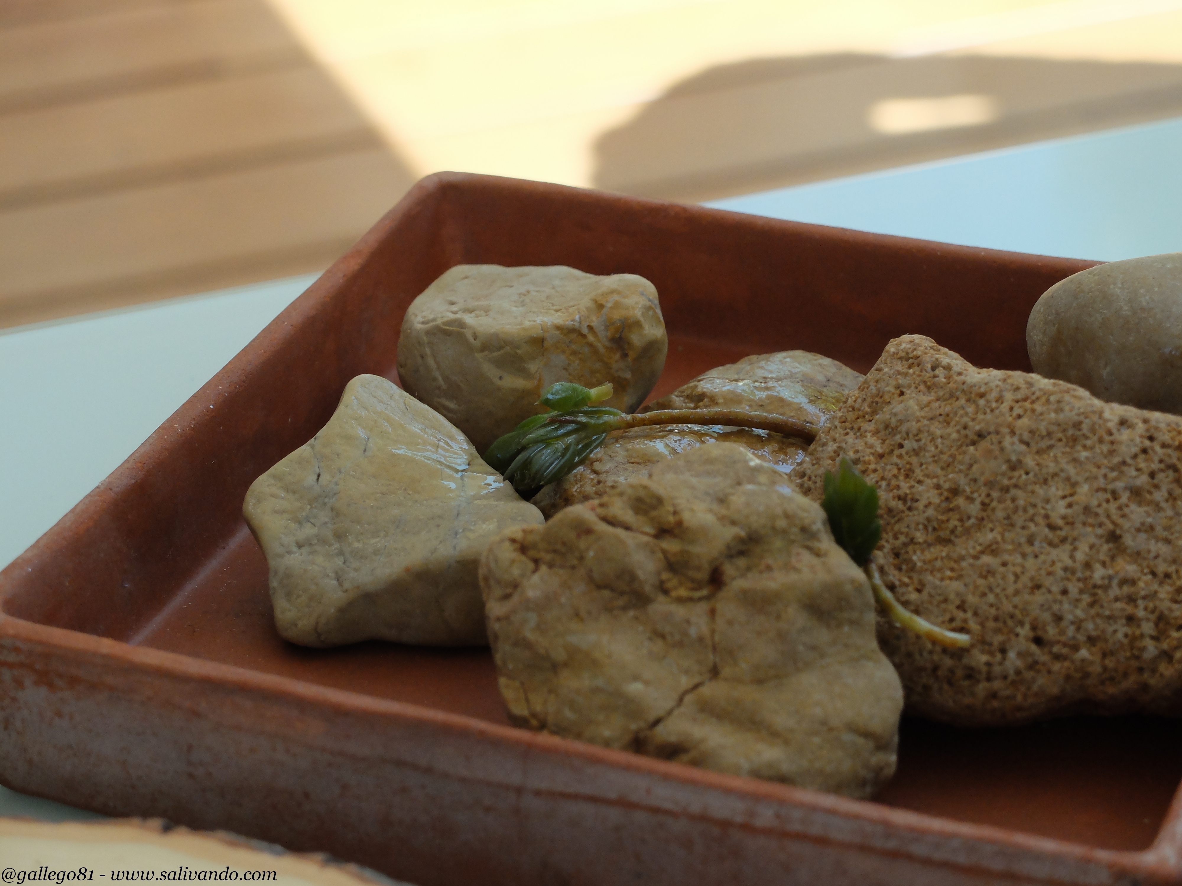 Y dejamos para el final el que más nos gustó de los tres. Las piedras de parmesano. Y es que nos pareció genial por la originalidad, la presentación y sobre todo el sabor. Este snack lo tenéis que probar obligatoriamente. De las piedras que veis sólo son comestibles dos de ellas. Hay que andarse con ojo antes de hincar el diente.