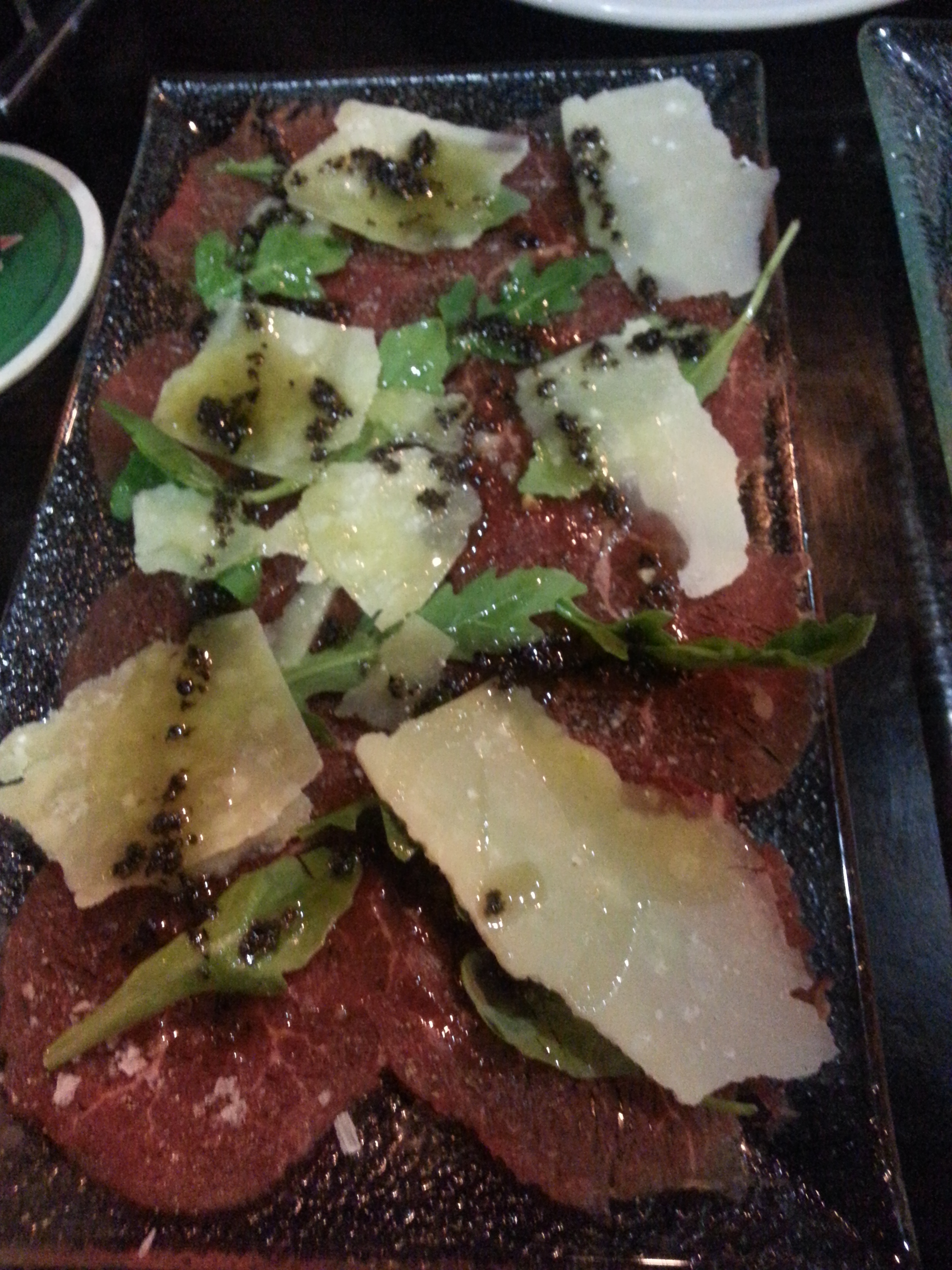 Si te apatece más algo de carne ligera, a veces tienen fuera de carta un carpaccio de ternera muy recomendable. Aderezo potente y bien de queso. Es poca cantidad así que lo podéis tomar casi que como una tapa. No dudéis en pediros algún principal más, como el tataki que viene a continuación.