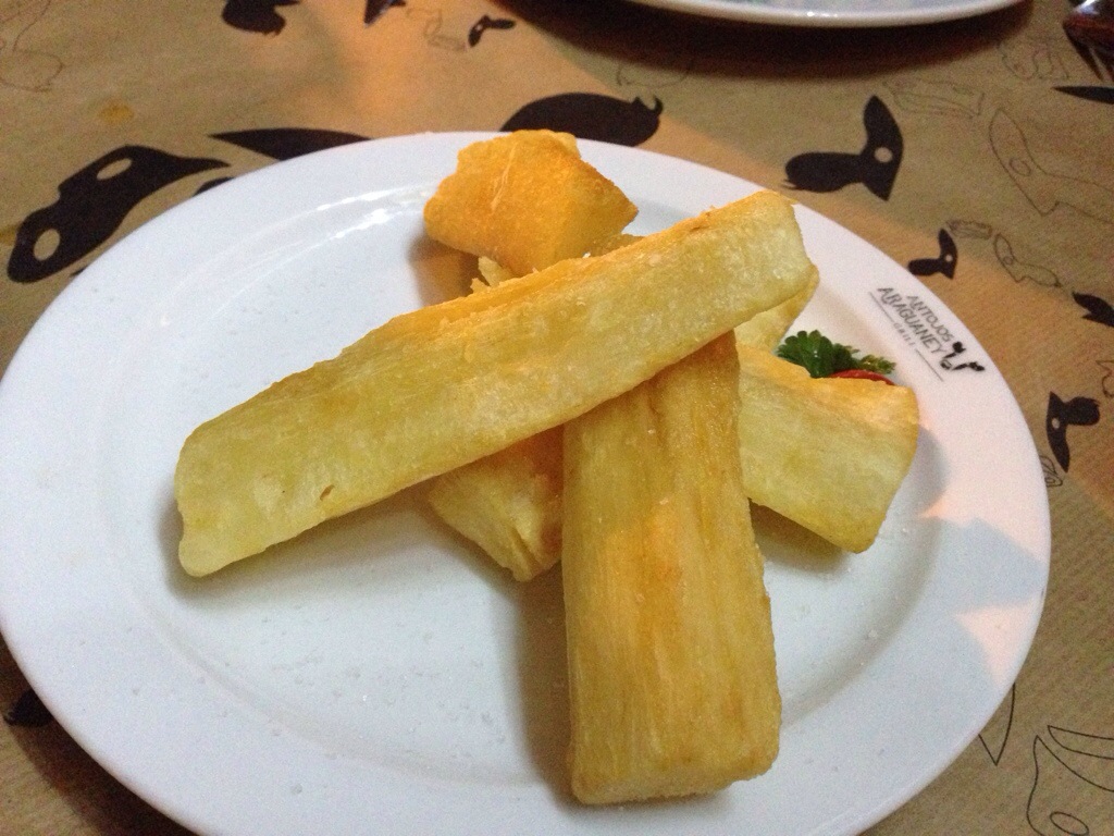 Con la carne pedimos además un par de guarniciones, para que entrara mejor. Uno fue la yuca frita, a modo de patatas fritas. Algo menos sabrosas que las patatas nuestras pero muy buenas también. El otro fue una hallaquita de chicharrón, que no nos acabó de convencer. Es una masa de maíz mezclada con chicharrón. Yo lo vi más para gustos venezolanos.