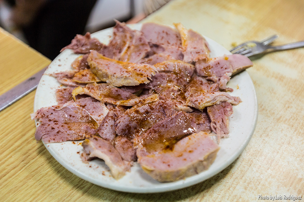Y de Casa Emilio a Joyma (Suero de Quiñones 7) uno de los descubrimientos de la ruta. El bar que Jose y María inaguraron hace casi 30 años es el bar de barrio por definición. María, asturiana, está al mando de la cocina y hace una Tortilla de Patatas que para mi es de las mejores que he probado en Madrid. Y si con la tortilla no te ha convencido, pues espérate al lacón que también es espectacular. Lo compra crudo y ella lo asa y lo deja jugoso a más no poder. Un manjar. Está abierto todo el día y es el refugio de los vecinos y currantes del barrio. Te recomendamos encarecidamente que lo visites. Cerveza siempre fría y tintos de verano con su chispazo de vermú, que fue la sensación de la ruta.