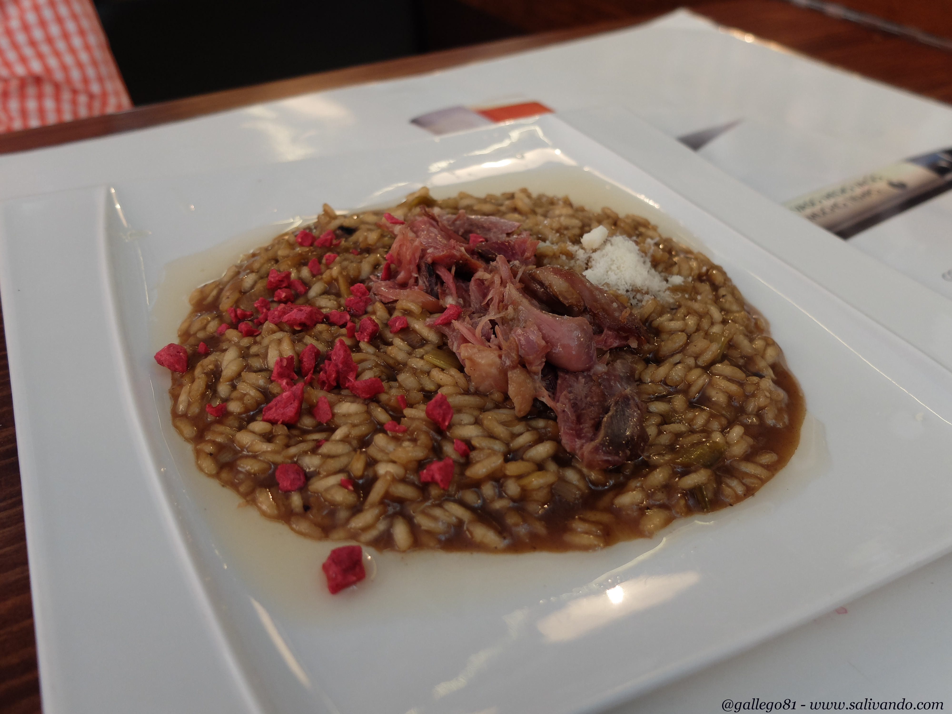 El siguiente plato fue el arroz meloso con caza y frambuesas. Una pena que no sea plato de carta porque estaba realmente bueno. Sabor exquisito y textura melosa de verdad. Y el toque de las frambuesas deshidratas, además de original, casaba perfectamente. La próxima vez que vaya si tienen algún arroz del día, caerá seguro.
