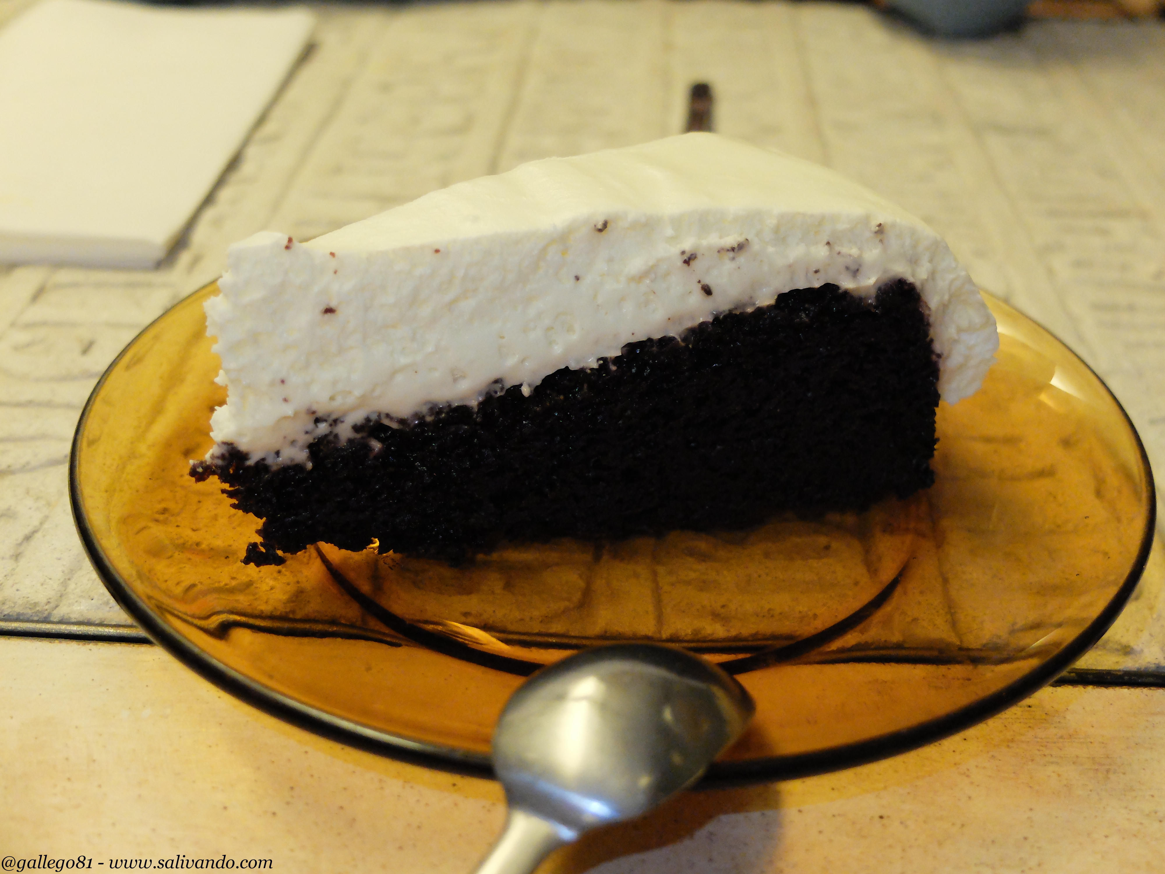 De postre, tarta casera de chocolate a la cerveza negra. Buenísima. Nada empalagosa. Muy muy recomendable. Y acompañado de un café «vintage».