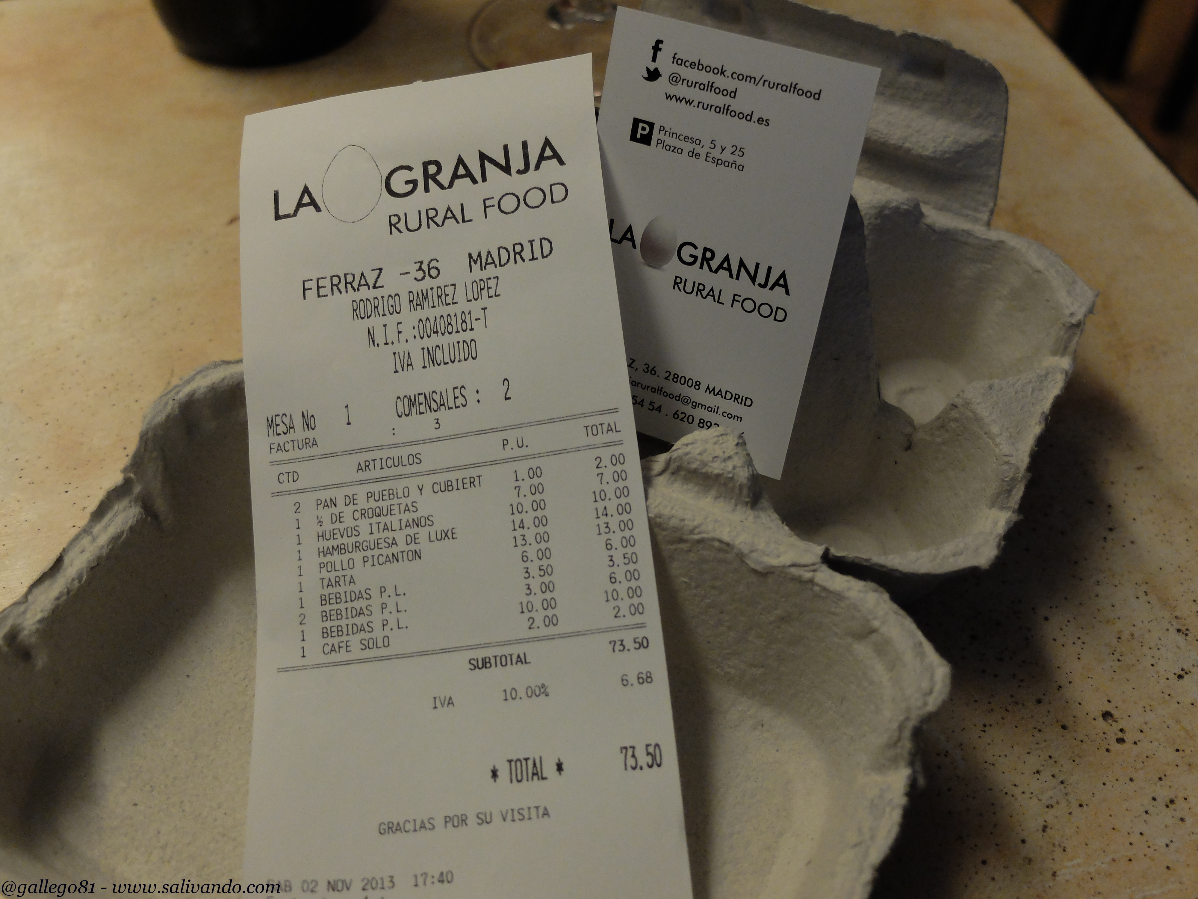 La idea de la factura, se la hemos copiado a los amigos de Sr. y Sra. Sibaritas. La verdad es que es muy útil. Pero no la pondré de todos los sitios, porque hay veces que nos calentamos con el vino y las bebidas y… no es cuestión de ir aireando mi adicción. ;-D