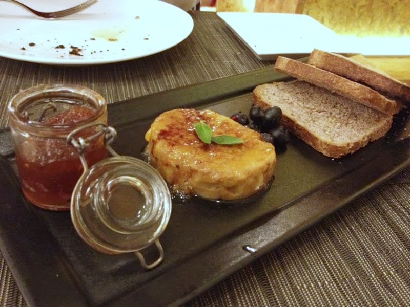 De primero tomamos la terrina de foie gras caramelizado, con chutney de tomate y frutos secos. Una locura de plato, lo mejor de todo. Ese sabor intenso y suave del foie nos pareció una pasada.