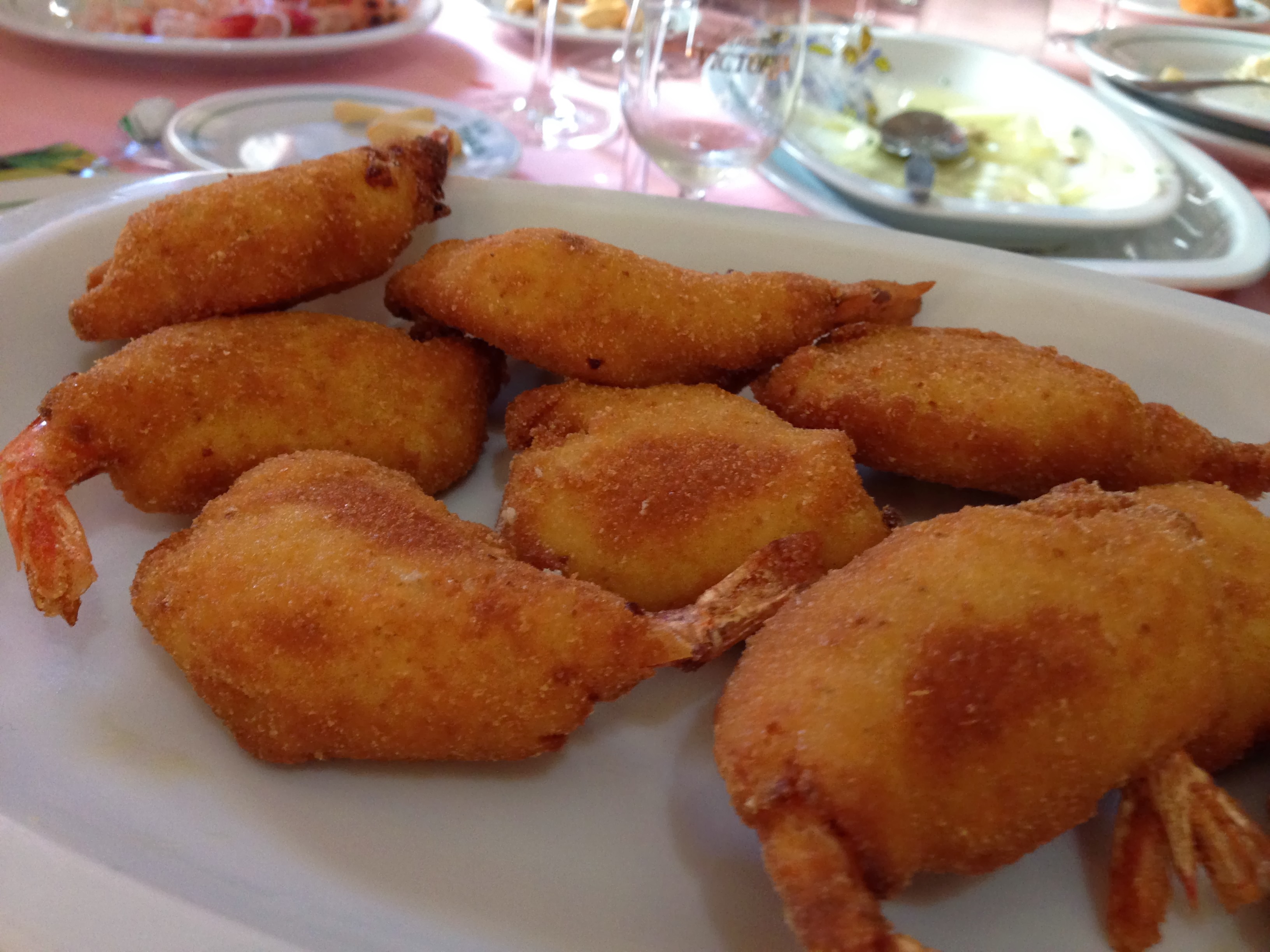 Como a Carmen las angulas no le encantan, le pusieron unas gambas rebozadas, aunque la verdad es dado el tamaño del plato, picamos casi todos. Bien gorditas y el rebozado en su punto. La verdad es que la bechamel estaba buena, pero quizá un poco pesada y ahogaba el sabor de la gamba.