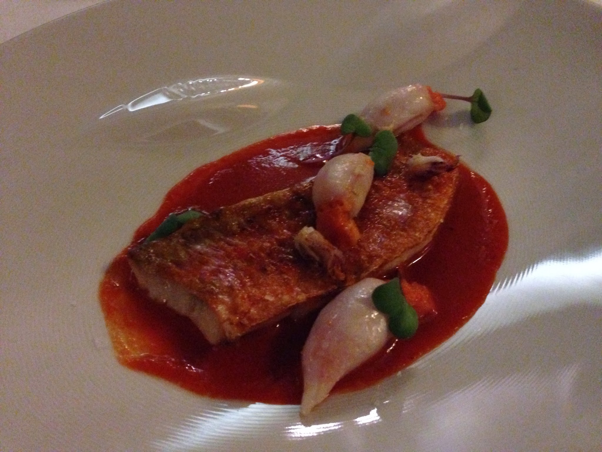 Aunque no estaba en la carta, Carmen recordaba el salmonete como el mejor plato de cuando estuvo la otra vez en Pedro Lemos, y cuando reservó preguntó si tenían salmonete en la carta, pero le dijeron que no. Qué sorpresa que cuando llegamos al pescado se las habían ingeniado para tenerlo ese día, y así pude probar este pescado tan fino y que me encanta siempre, pero esta vez estaba espectacular, no había probado ninguno así nunca.