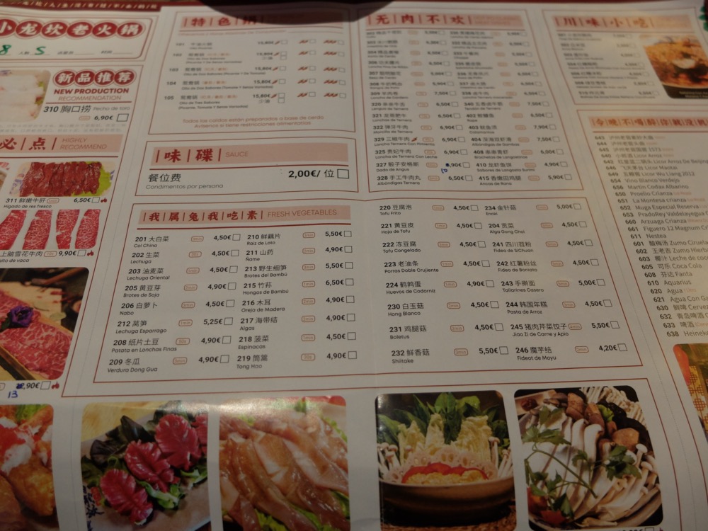 Los que tengáis problemas para leer de cerca, no os dejéis las gafas en casa. El nombre grande está en chino y el pequeño en español. Y ojo, no pidas al tuntun que te pueden traer tendones de ternera o mollejas de pato.