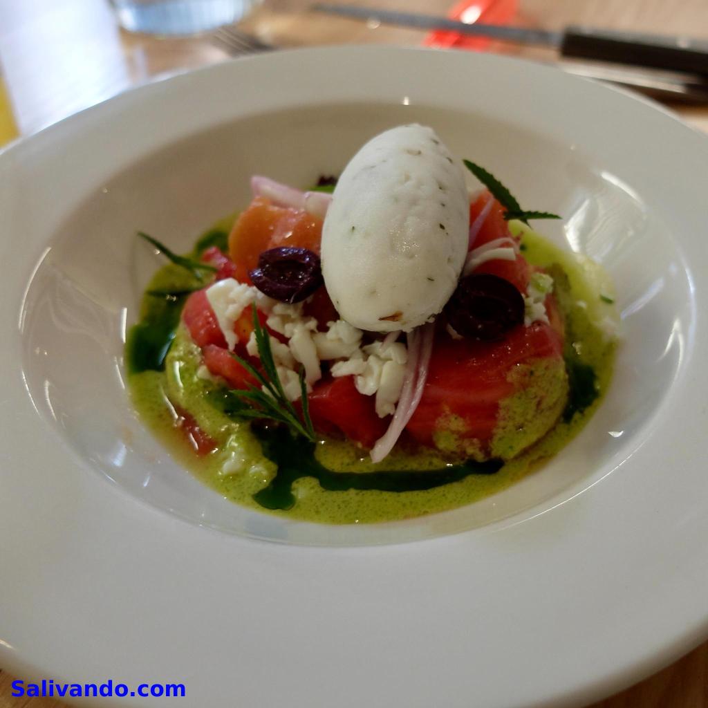Comenzamos nuestra experiencia con la ensalada de tomates de La Rioja. A simple vista, podrías pensar que se trata de un plato sencillo, pero nada más lejos de la realidad. Cada tomate, madurado en su punto exacto, era una explosión de sabor. La combinación de texturas y el aliño justo hicieron que este plato nos transportara directamente al corazón de La Rioja. ¡Un comienzo perfecto para abrir el apetito!