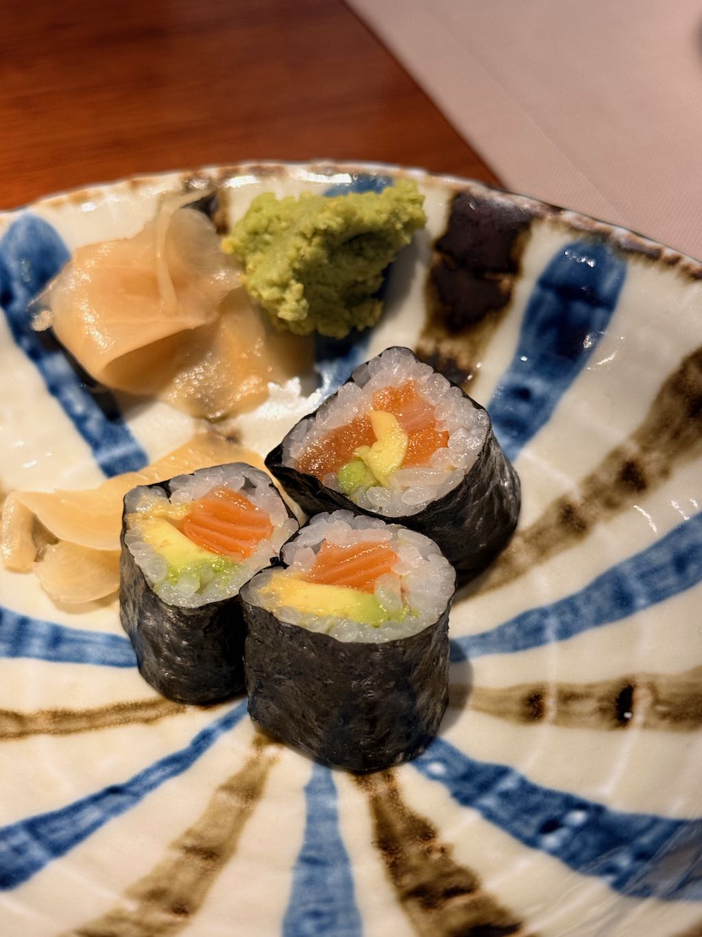 Empezamos con unos makis de salmón como aperitivo, correctos y bien preparados, ideales para abrir boca sin complicaciones.