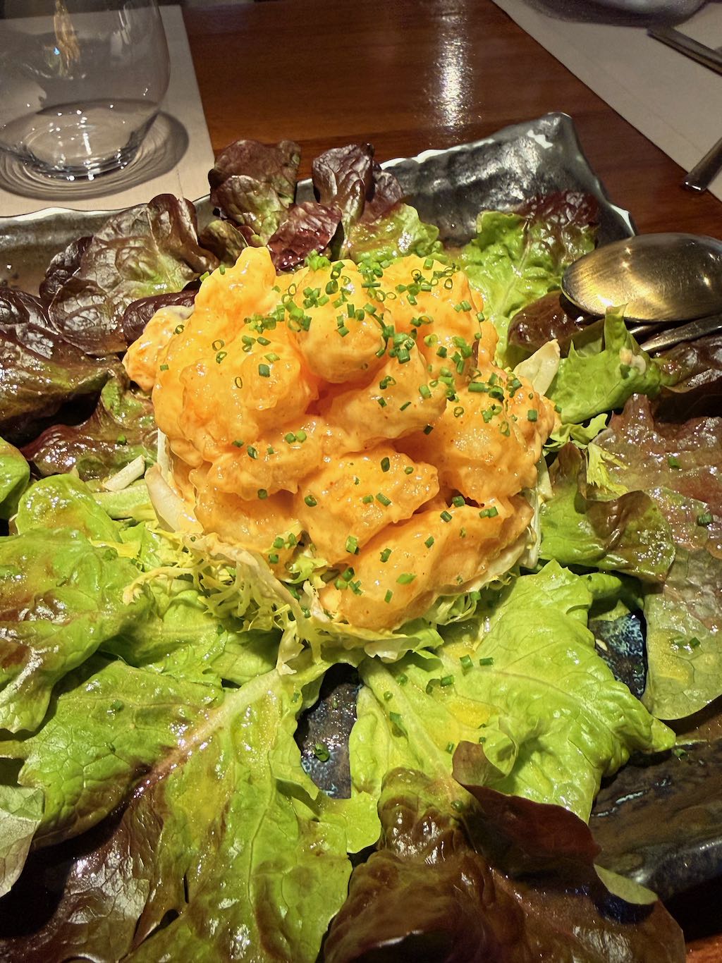 Entre los entrantes, los langostinos tigre en tempura son uno de los platos más destacados. Probablemente de las mejores tempuras de Madrid. Fina, crujiente, nada pesada y con el langostino en su punto. Un clásico que aquí ejecutan realmente bien.