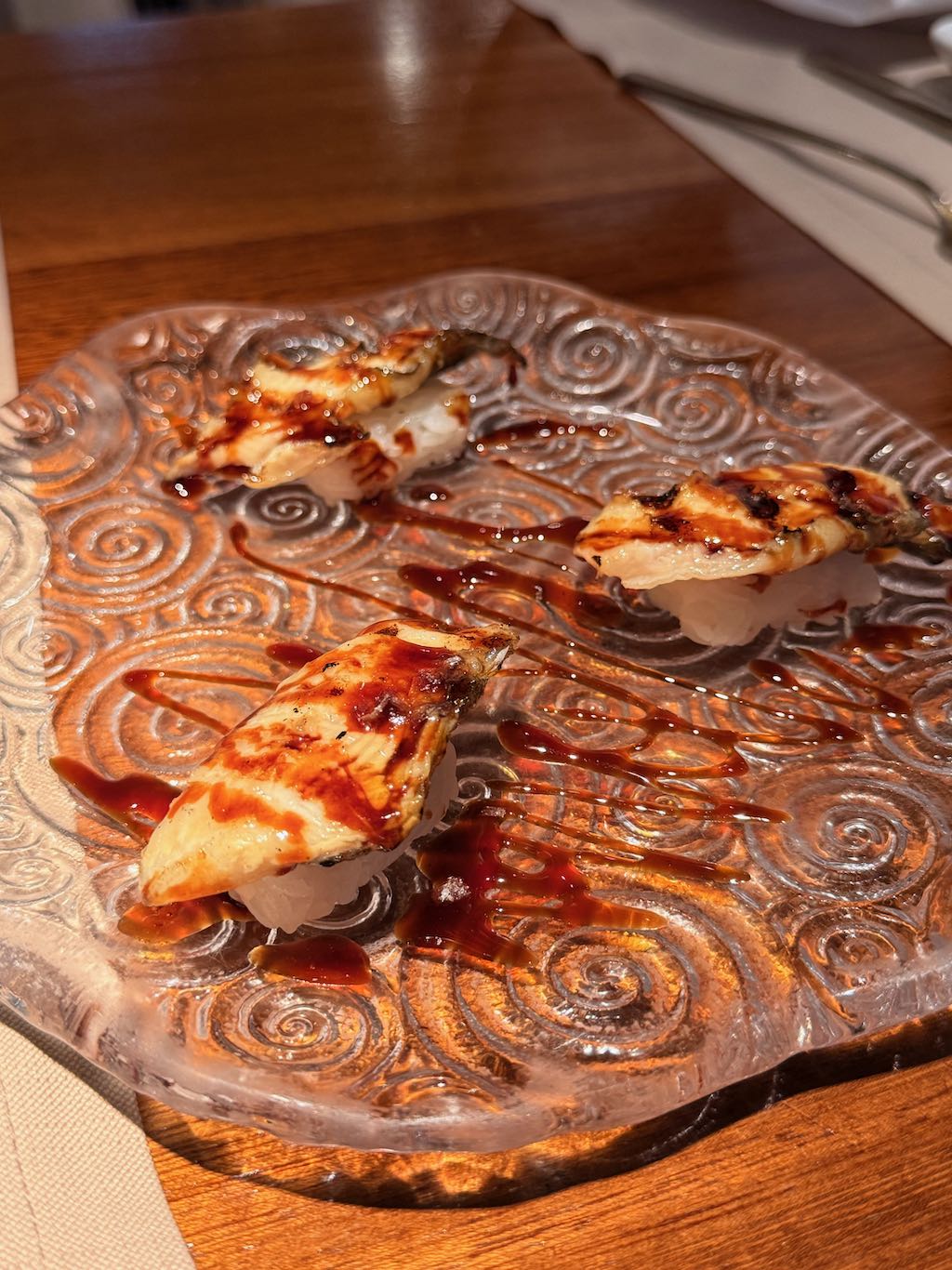 El nigiri de anguila cumple perfectamente, bien glaseado y con ese punto dulce característico que siempre funciona.