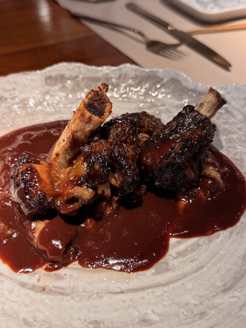 Y como cierre salado, la costilla de ternera cocinada a baja temperatura. Un plato que ya es un clásico de la casa y que no defrauda: carne muy melosa, bien glaseada y con un sabor potente que contrasta con el resto de la propuesta más centrada en pescado.